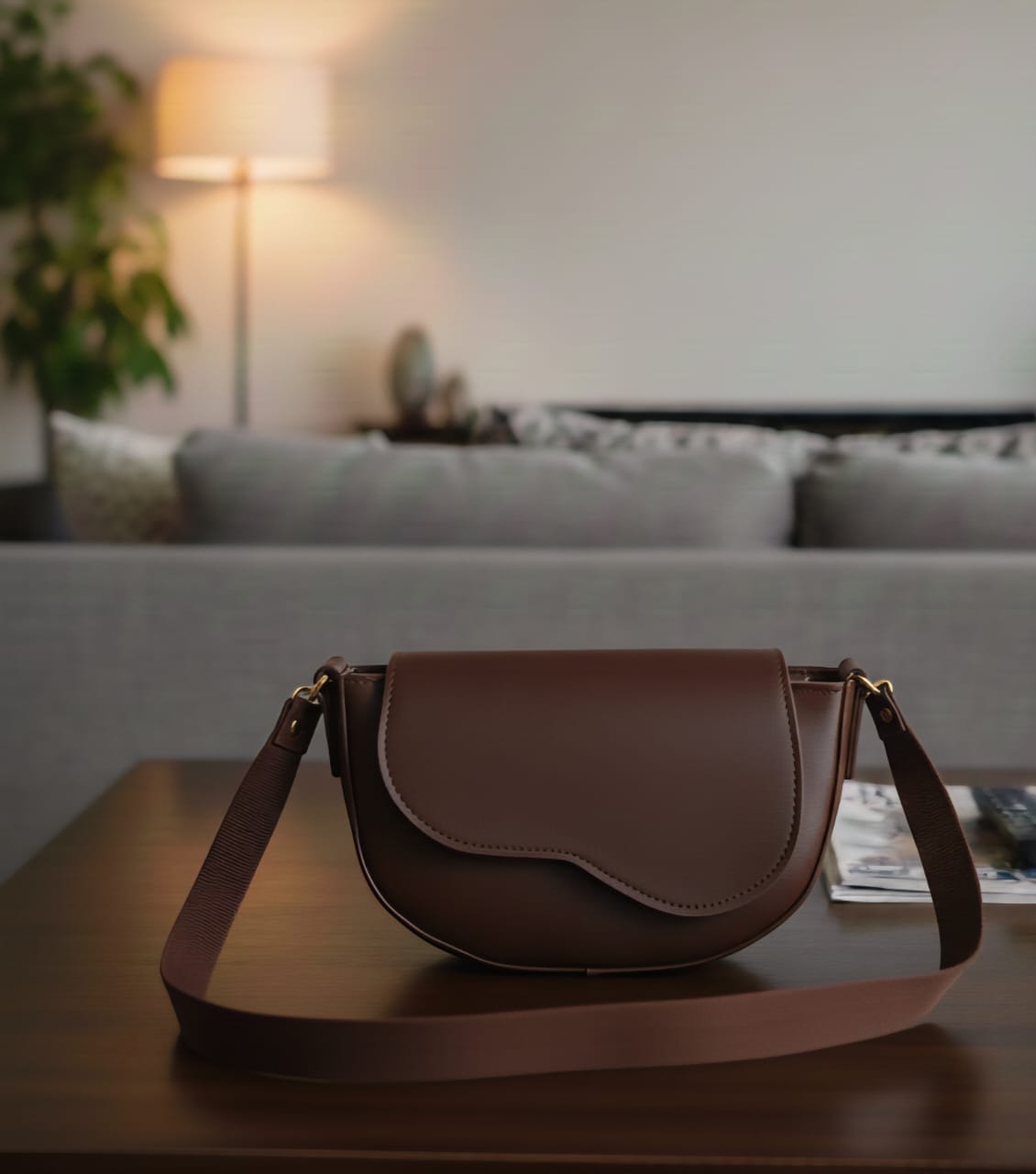 This elegant bag is crafted from smooth, high-quality rexine for a sleek and refined look. Its structured shape, curved flap, and gold-tone hardware add a touch of sophistication, while the adjustable strap and top handle offer versatile styling for daily use or evenings out.